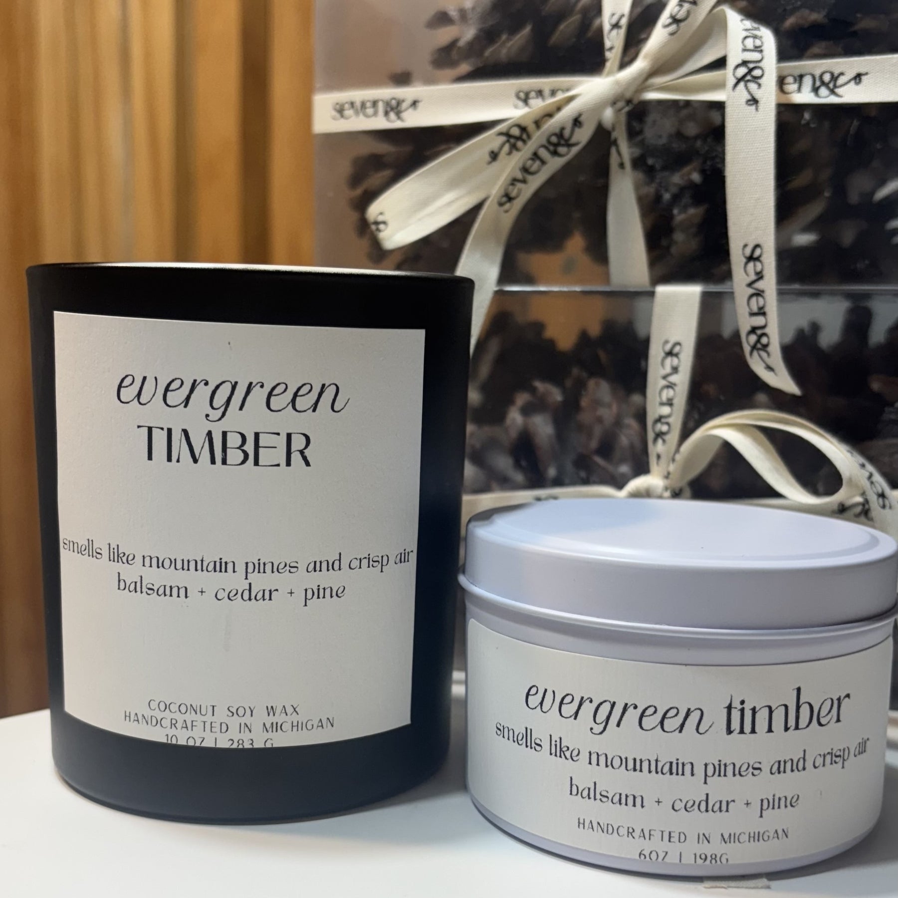Description: Imagine pushing open the door of a rustic winter cabin surrounded by evergreens. Evergreen Timber fills the space with bright balsam, followed by a wave of pine and cool ozone that feels like fresh air rolling in from outside. Gentle musk warms the finish, like a soft blanket over chilled wood. A scent that transports you to a quiet cabin retreat.